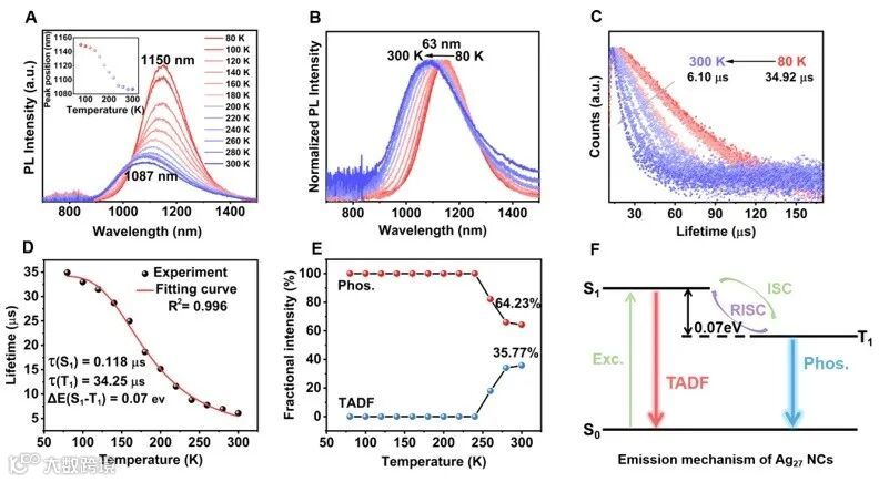 纳米团簇在近红外二区(NIR-II)表现出有趣的TADF发光,并通过单线态氧(