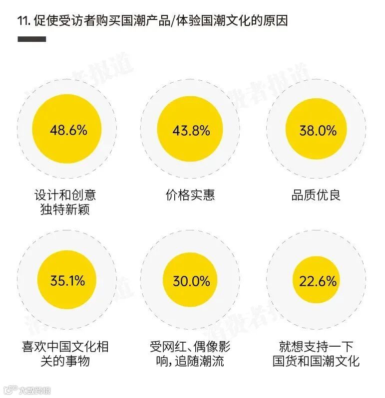 当被问及对于“国潮”的感知度时,有63.1%的受访者认为,感觉到近年来关于“国潮”及其产品的热度在上升,讨论度广泛。另有30.2%的人认为“有一点热度”,仅有1.1%的人表示“没听说过国潮”。
