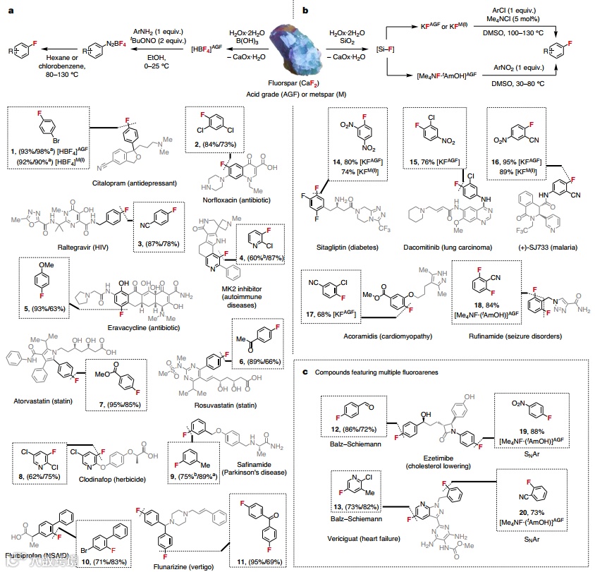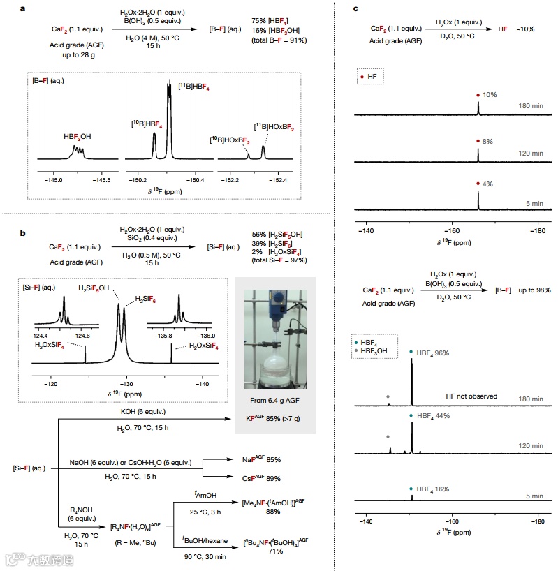 ,这个可规模化的工艺在低温(<50℃)的水溶液中进行,可以获得许多含氟化合物,包括四氟硼酸、碱金属氟化物、四烷基氟化铵、氟代(杂)芳烃。