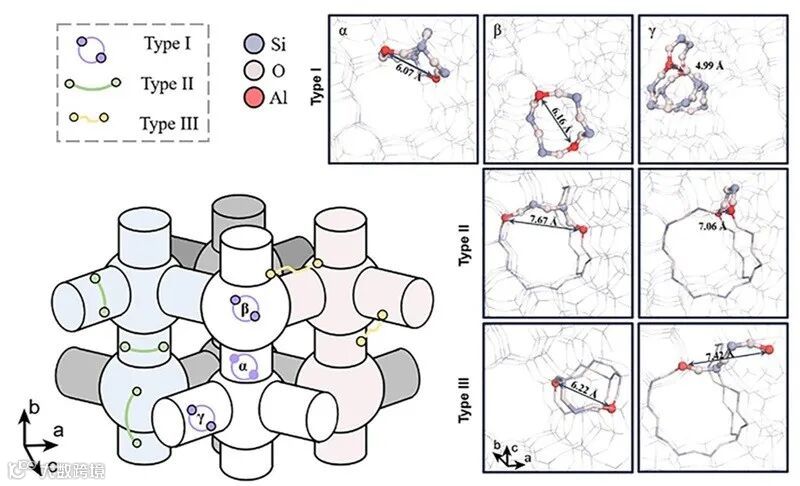 图1. ZSM-5中基于本工作开发方法的可辨识、可定量铝对类型。