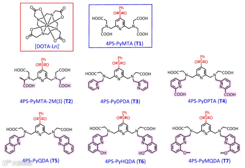 图2. 根据4PS-PyMTA配体衍生化的一系列配体化学结构。图片来源:J. Am. Chem. Soc.