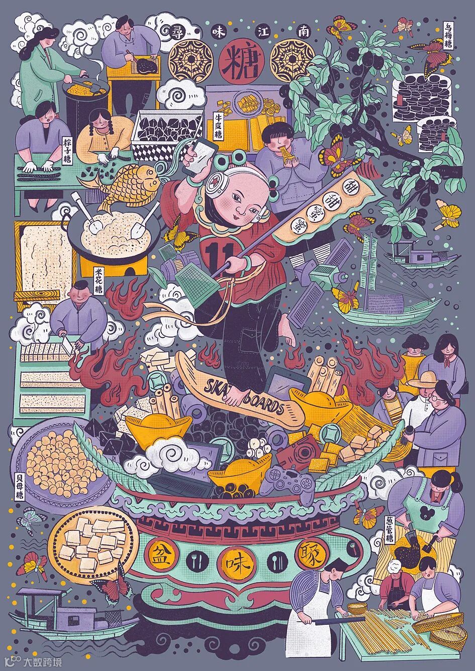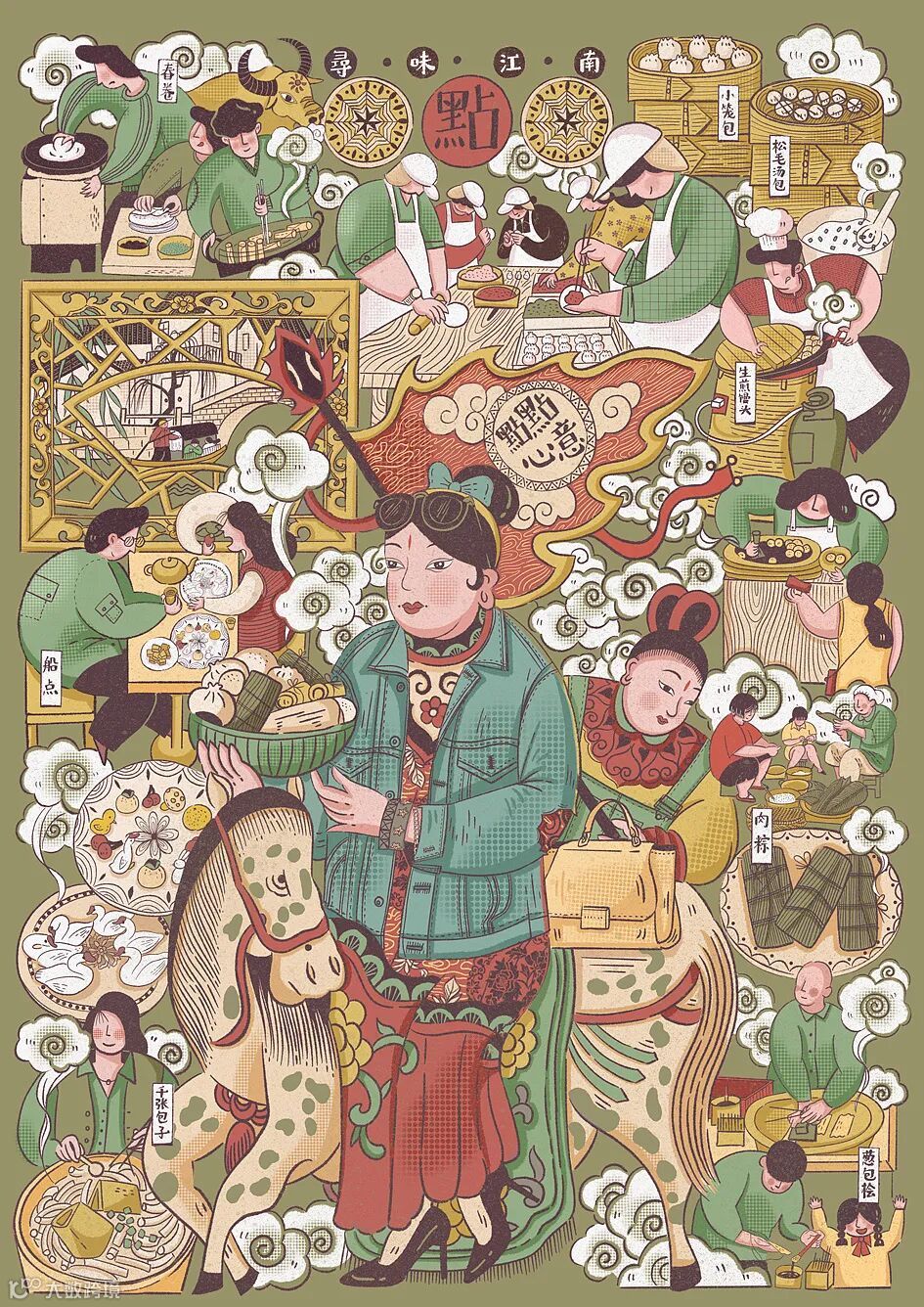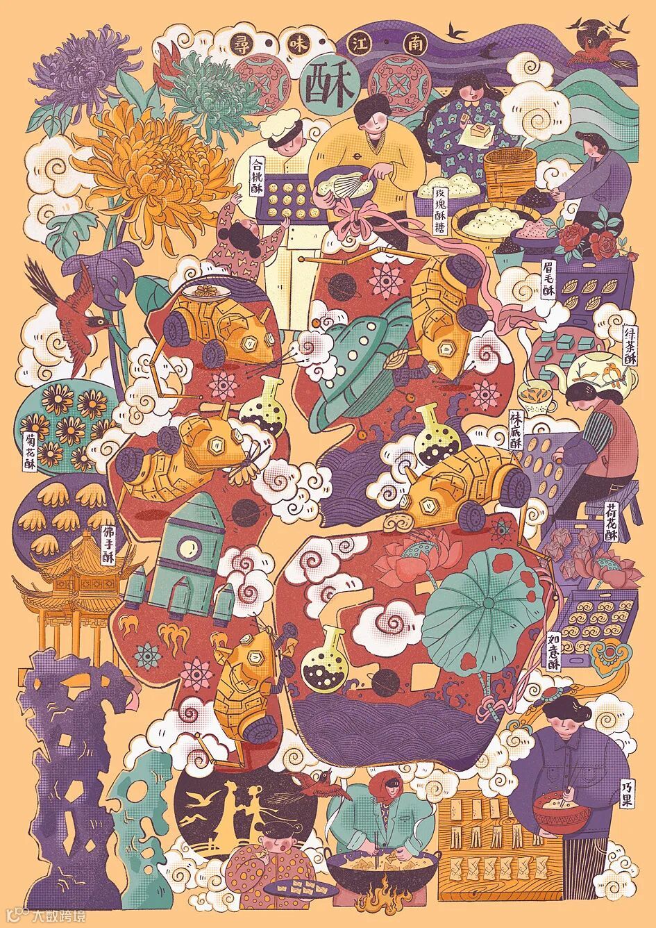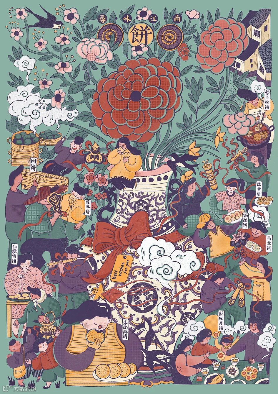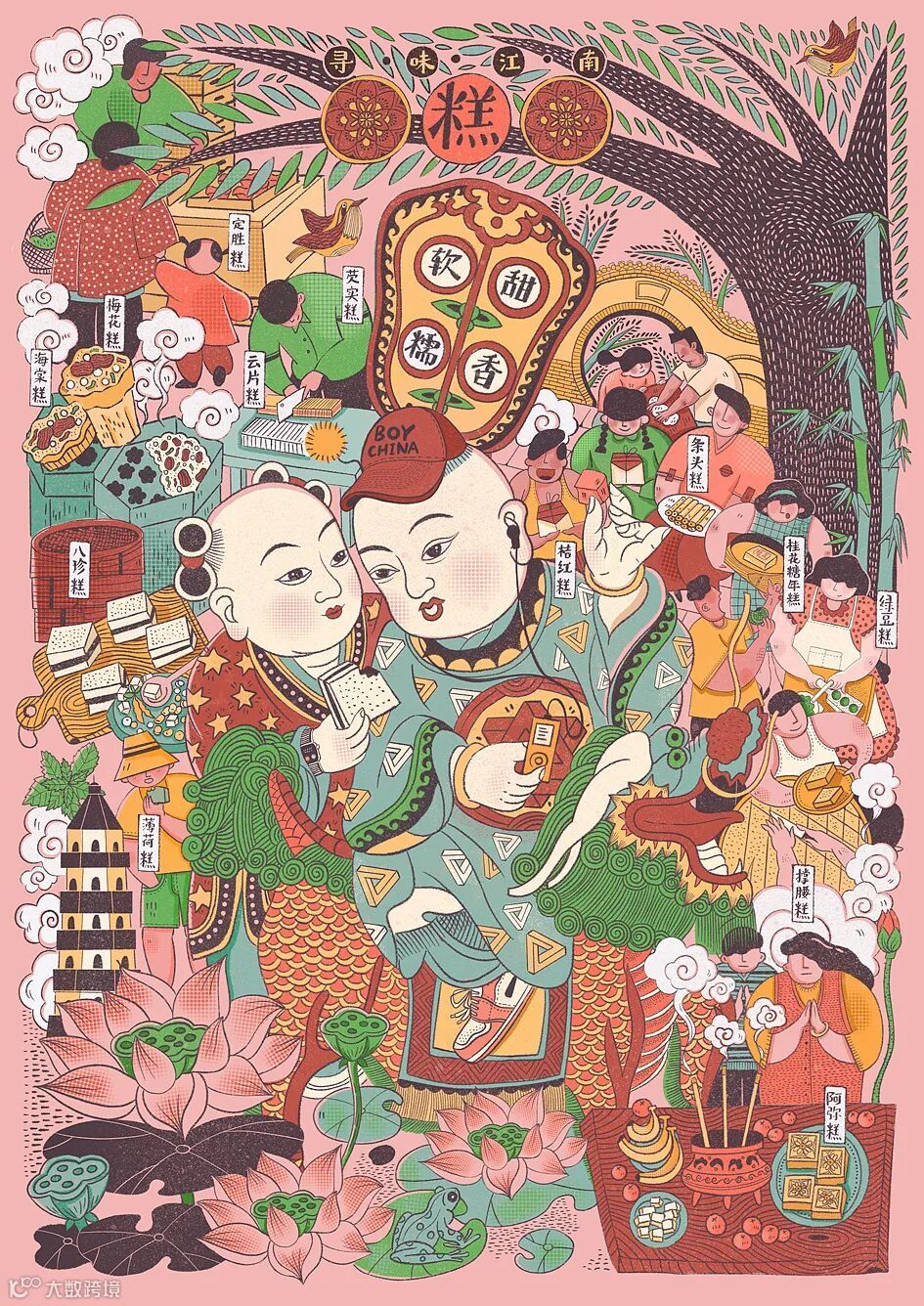 糕饼,传神的画面,点缀成烟火的轮廓,闪烁着岁月的星星点点,不疾不徐不欢不闹。吴侬软语的阿婆在咿咿呀呀的评弹的曲绕歌响里穿街过巷,小脚的扁担撑着四方的箱子,停下来歇歇脚,便是一个美味的世界。