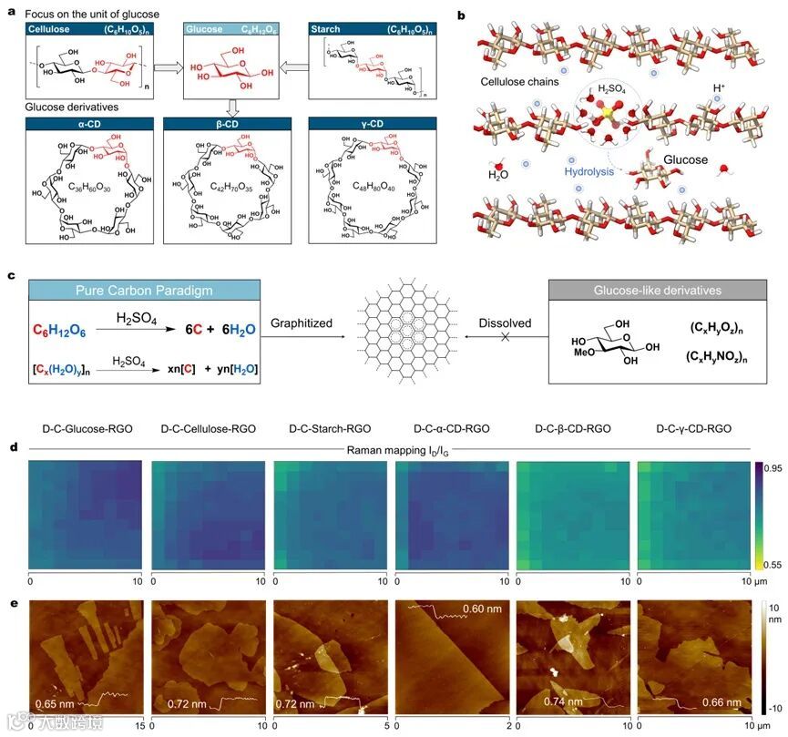进行葡萄糖脱水的方法。基于此,作者提出了一个制备石墨的纯碳范反应式(图3c)——满足分子通式