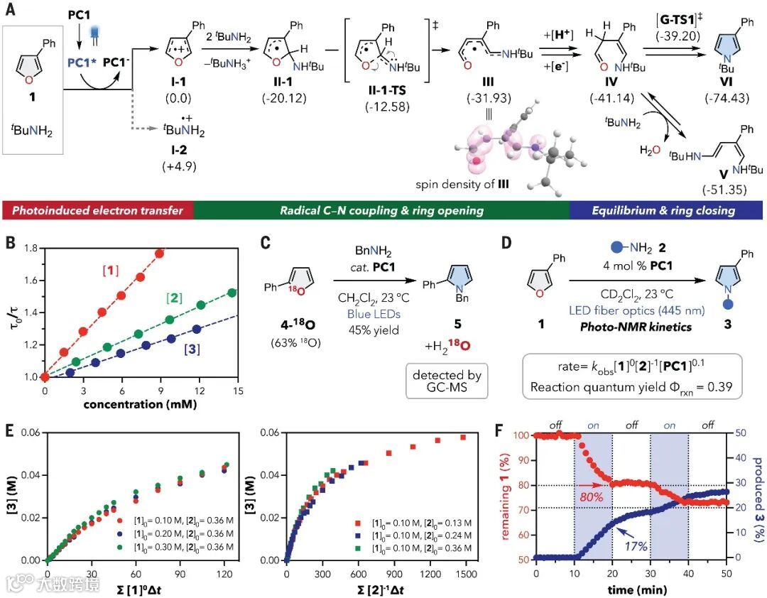 ,进而证实了转化的氧化还原中性和可持续性(图3C)。最后,作者利用动力学分析、光核磁共振(NMR)光谱以及