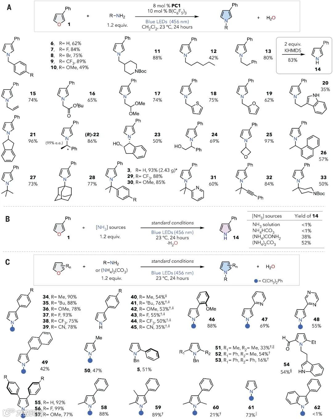 Science:光催化O→N单原子替换,呋喃变吡咯