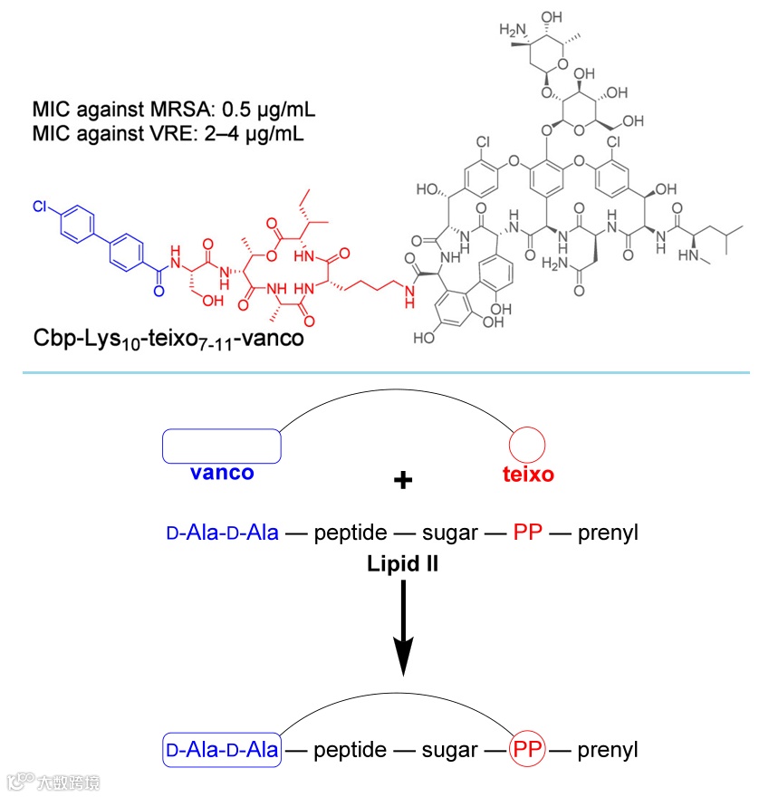 万古霉素-泰斯巴汀偶联物及作用机制示意图。图片来源: