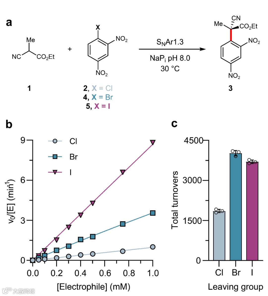 图2. 卤化物离去基对SNAr 1.3活性的影响。图片来源:Nature