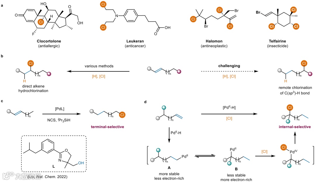 鉴于烯烃原料丰富易得,烯烃氢氯化是合成烷基氯化物最直接和最有吸引力的方法之一。通常,氢原子和氯原子倾向于直接加成到C=C键上(图1b)。虽然烯烃远程氢氯化能通过C(s