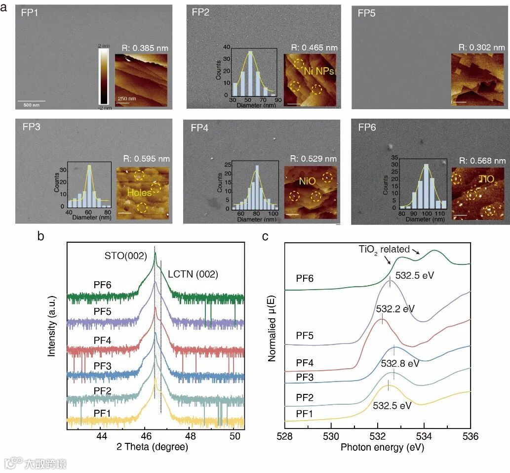 近日,厦门大学孙毅飞团队在国际顶级期刊Journal of the American Chemical Society 上发表了最新研究成果,对一系列析出异质纳米颗粒(特别是Ni和NiO)修饰的钙钛矿薄膜平台(La0.4Ca0.4Ti0.94Ni0.06O3,LCTN)进行了CO2电还原反应(CO2RR)活性的定量分析。跨尺度电化学表征结合密度泛函理论(DFT)建模清楚地表明,纳米颗粒/钙钛矿界面的边界长度与CO2还原活性严格相关。在NiO/LCTN界面的每个活性位点上,固有反应速率的周转频率(TOF)在800 ℃下达到了7.05±0.75×104 s-1,比Ni/LCTN和LCTN分别高出2.5倍和4个数量级。