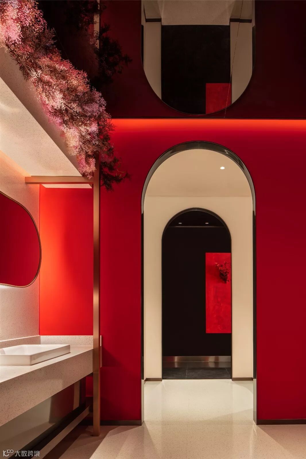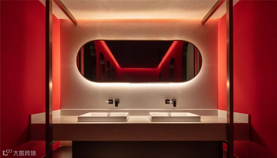 Gary一直希望卫生间也能带给人美的享受,兼顾人的基本生理需求和心理需求。一般餐厅为了追求店面盈利面积最大化,在卫生间的面积上都有所压缩,使用时总会有点局促感。本案中,设计师别出心裁,提升卫生间的颜值,将它打造成了空间打卡点。