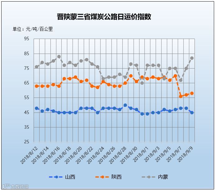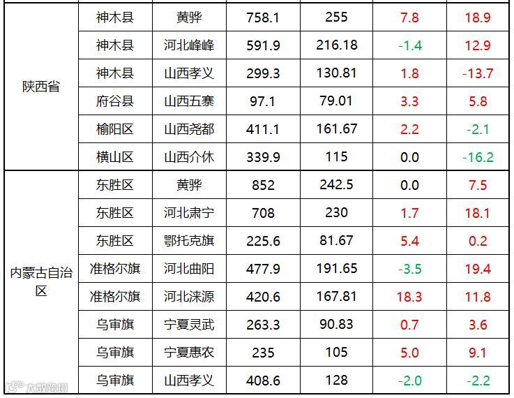 【内蒙古】今日内蒙地区受到下游块煤需求拉动及煤价小幅上涨影响,运价小幅上涨1-18元/吨不等。