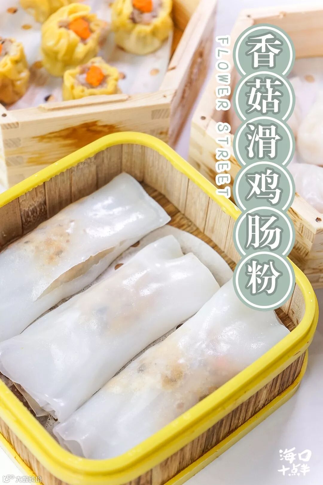 如果还没有吃饱,就来份『香菇滑鸡肠粉』吧!皮薄馅多,浇上秘制肠粉酱汁,口感非常棒~