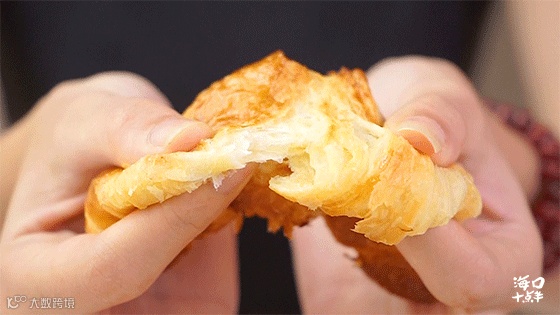 店里还有酥到咬一口就狂掉渣的『牛角包』,吃起来有淡淡的黄油味,真的好香!