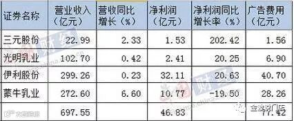 四家知名乳业企业净利润和广告费对比