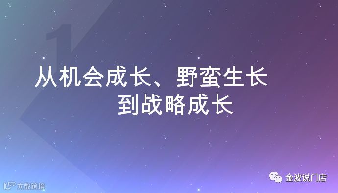 3,《野蛮生长》是冯仑很多年前的一本书,值得一看。企业的野蛮生长是因为有了野蛮的环境和荒芜的空间,才有可能恣意妄为和为所欲为。当机会不再来,任何的野蛮生长真的是变成了漫无目的的野蛮生长。“道生一,一生二,二生三,三生万物。万物负阴而抱阳,冲气以为和”。万事万物自有规律可循,从一家店到连锁店,到公司,终极的走向一定是“战略成长”。