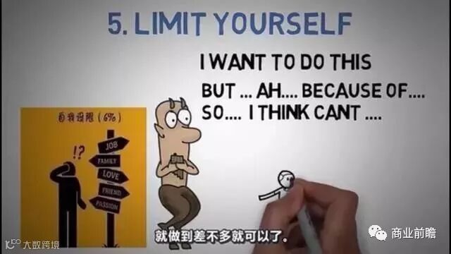 自我设限就是抹杀自己的潜能力。他们经常这样说:我想作A,但是我怕我做不到,因为有B,C,D,E种原因。他们还没去做之前,就先否定自己,并给自己找了一堆不付出努力的理由,所有的平庸与低成就都是自我设限的结果。