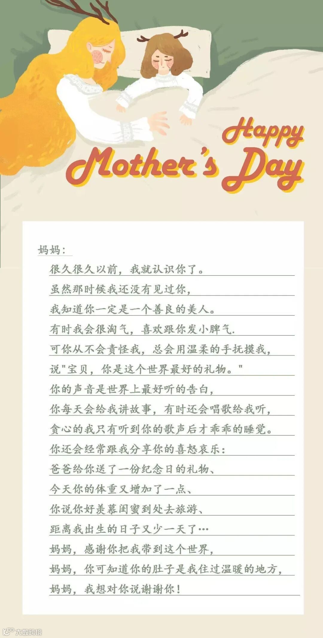 谢谢你,妈妈,我爱你。