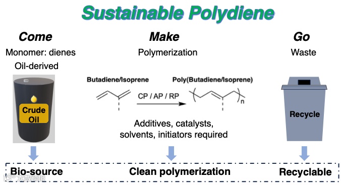 图4. 基于可持续聚二烯的“Come-Make-Go”的循环理念。