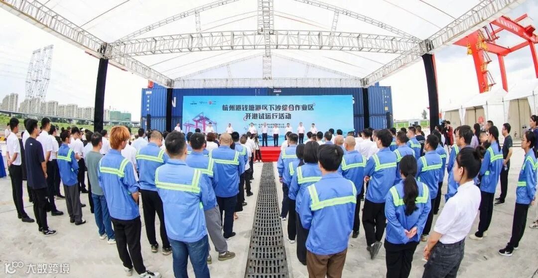 2020年10月,集团与杭州交投集团共同出资成立杭州港务集团有限公司(以下简称杭州港务),致力于打造成为杭州地区港口物流投资建设运营的主平台。此次开港的下沙港项目由杭州港务下属杭州下沙港口发展有限公司运营。下沙港位于刚开通的京杭运河杭州段二通道东岸,建有9个1000吨级泊位,设计年吞吐量300万吨(其中集装箱24万标准箱),经营货种以集装箱为主,兼顾件杂货、散货。航道可通航64标准箱及以下船型。此前,经集团下属智港通公司、信通公司与杭州港务的联合研发推进,宁波舟山港TOS系统(集装箱码头生产操作系统)已在下沙港成功上线试运行,使该作业区成为全省首个上线该系统的内河码头。