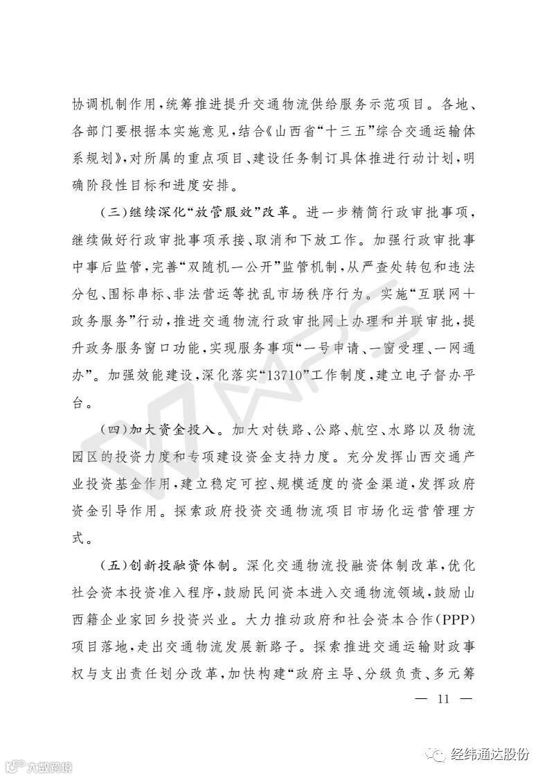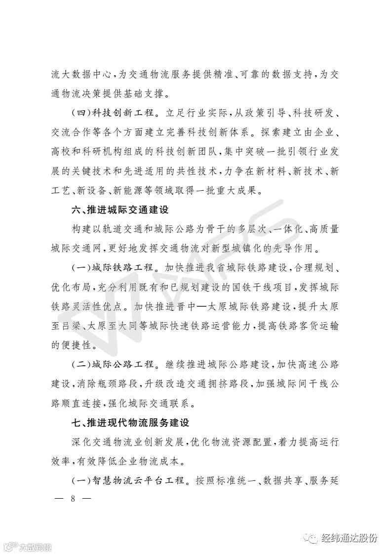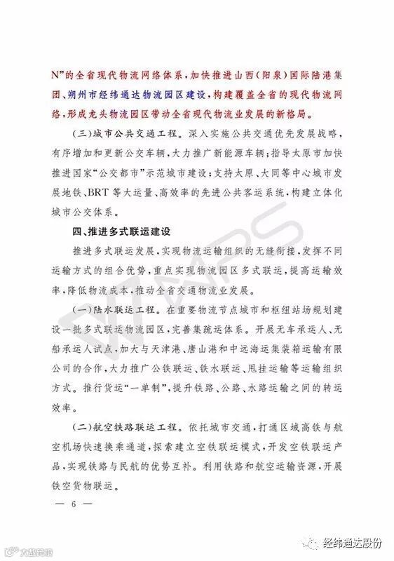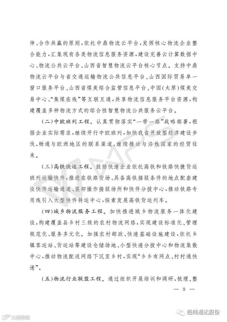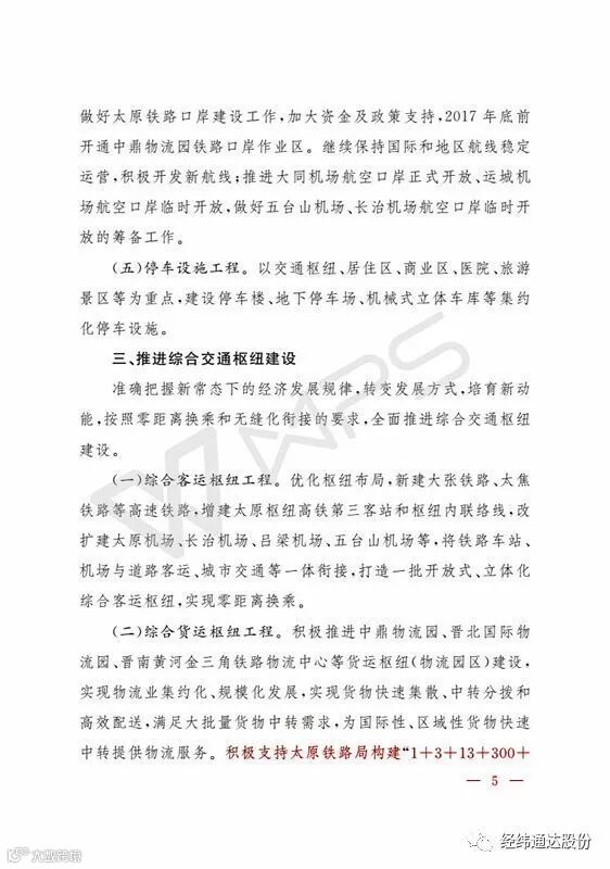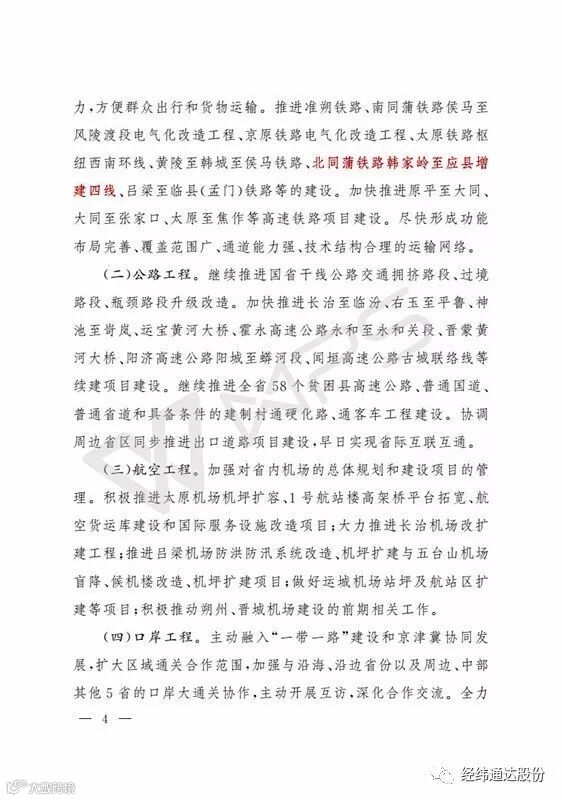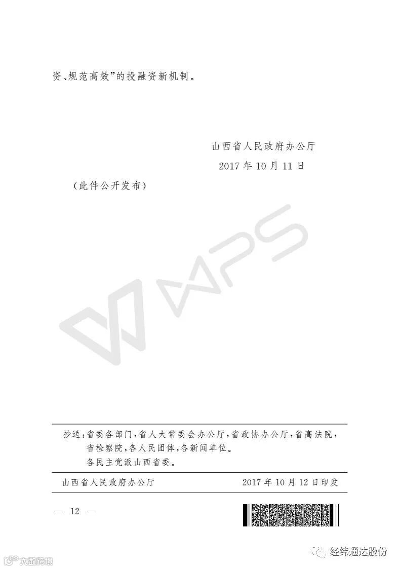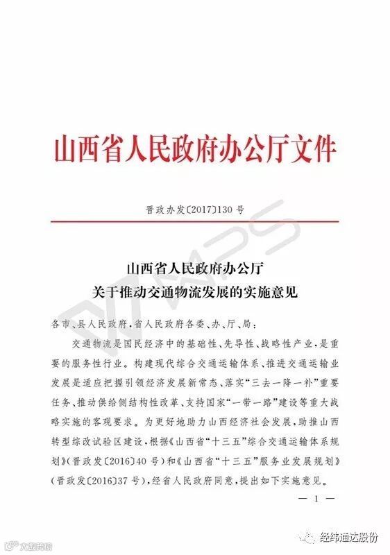 10月28日,山西省人民政府办公厅下发【2017】130号文件。文件明确点名,支持山西经纬通达