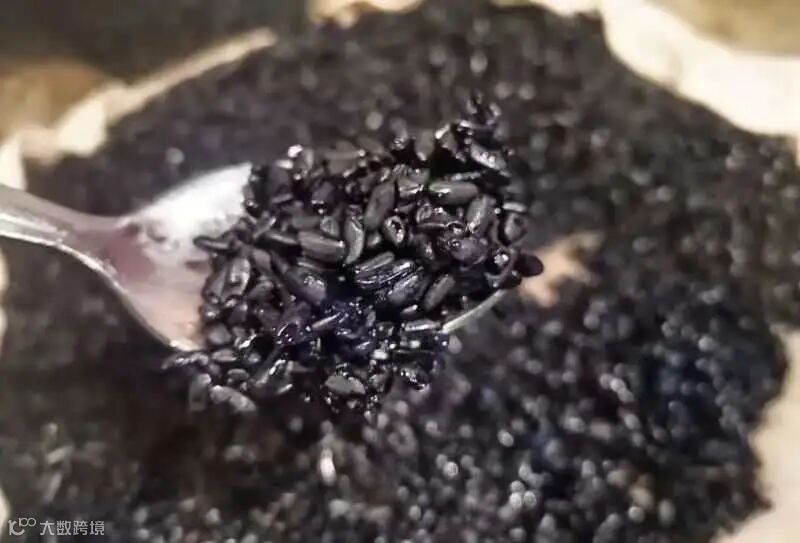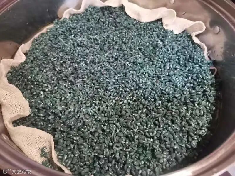 将孔雀蓝颜色的糯米上锅蒸30分钟,最后得到的就是黝黑发亮、粒粒饱满的乌米饭了。