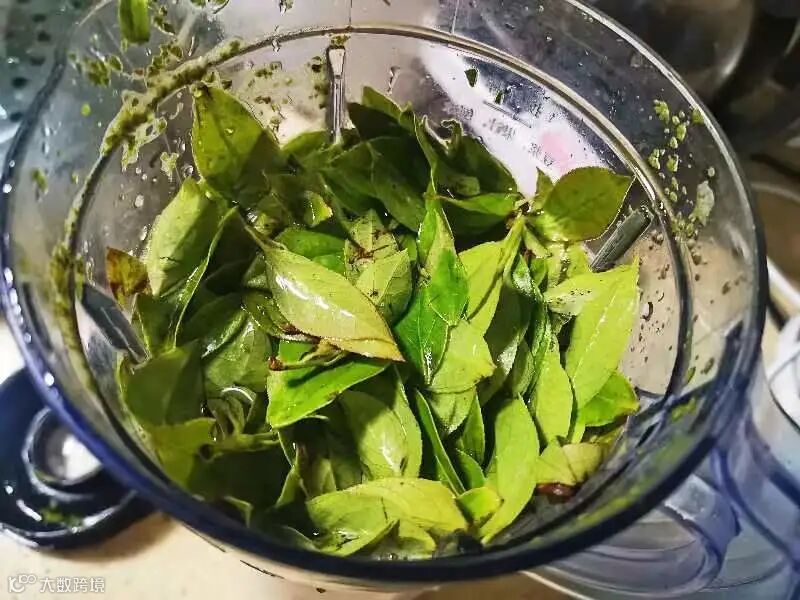 乌饭叶择叶清洗,将清洗后的乌饭叶研磨成汁。
