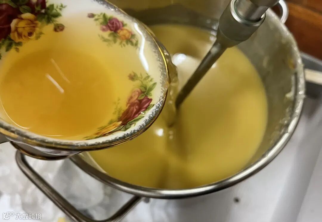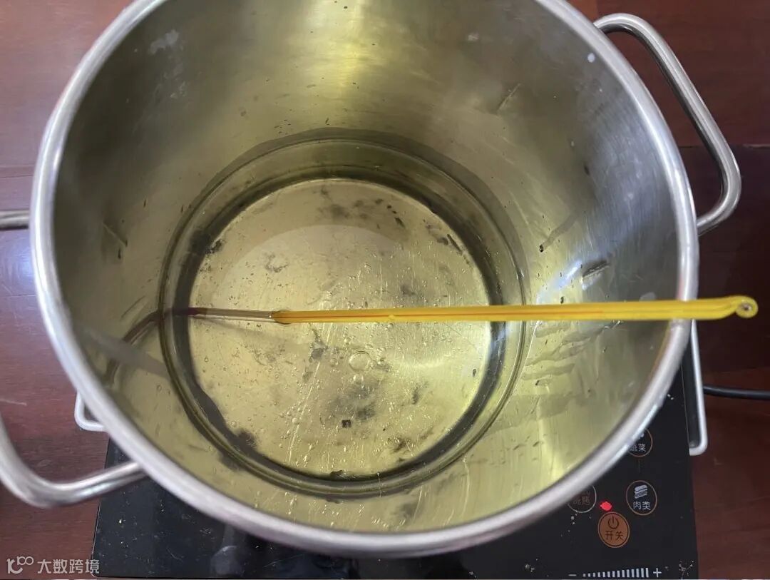 将油脂称量好放入不锈钢锅中,加热至80-85度。