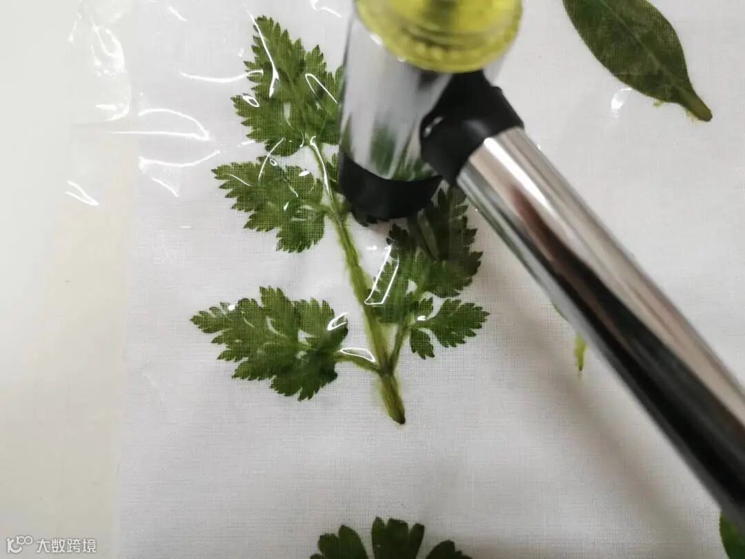 Tips:敲的时候,一开始力度要轻一些,太重容易将叶子敲变形;边缘尽量多敲几下,外轮廓会更清晰。