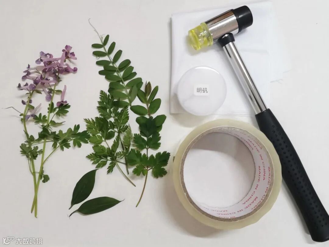 在使用之前可以先用重物压一压,让植物保持表面平整,更方便印画。对于略干枯的植物可以用明矾浸泡,便于上色(3g明矾:1000ml水,浸泡15-30分钟)。泡完后用纸巾将植物轻轻擦干,汁水丰富的花叶可以直接进入下一步。