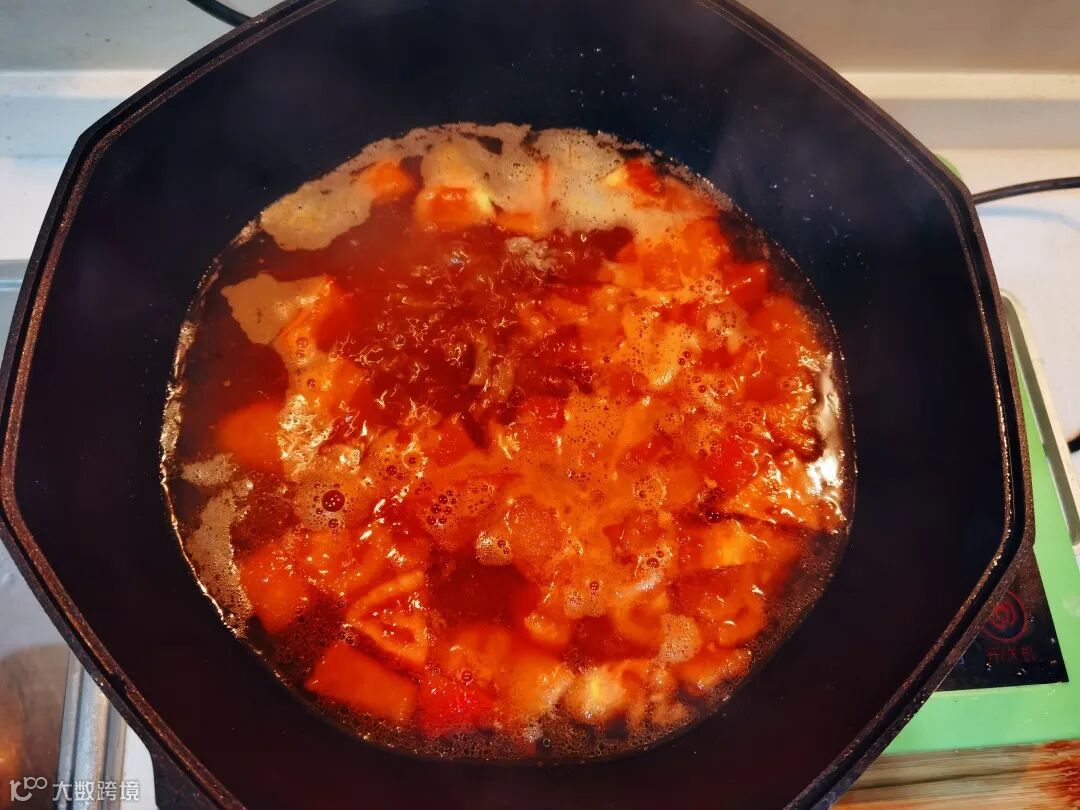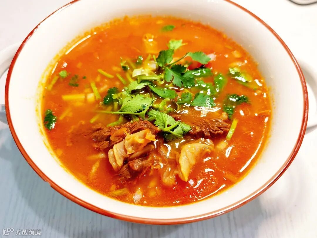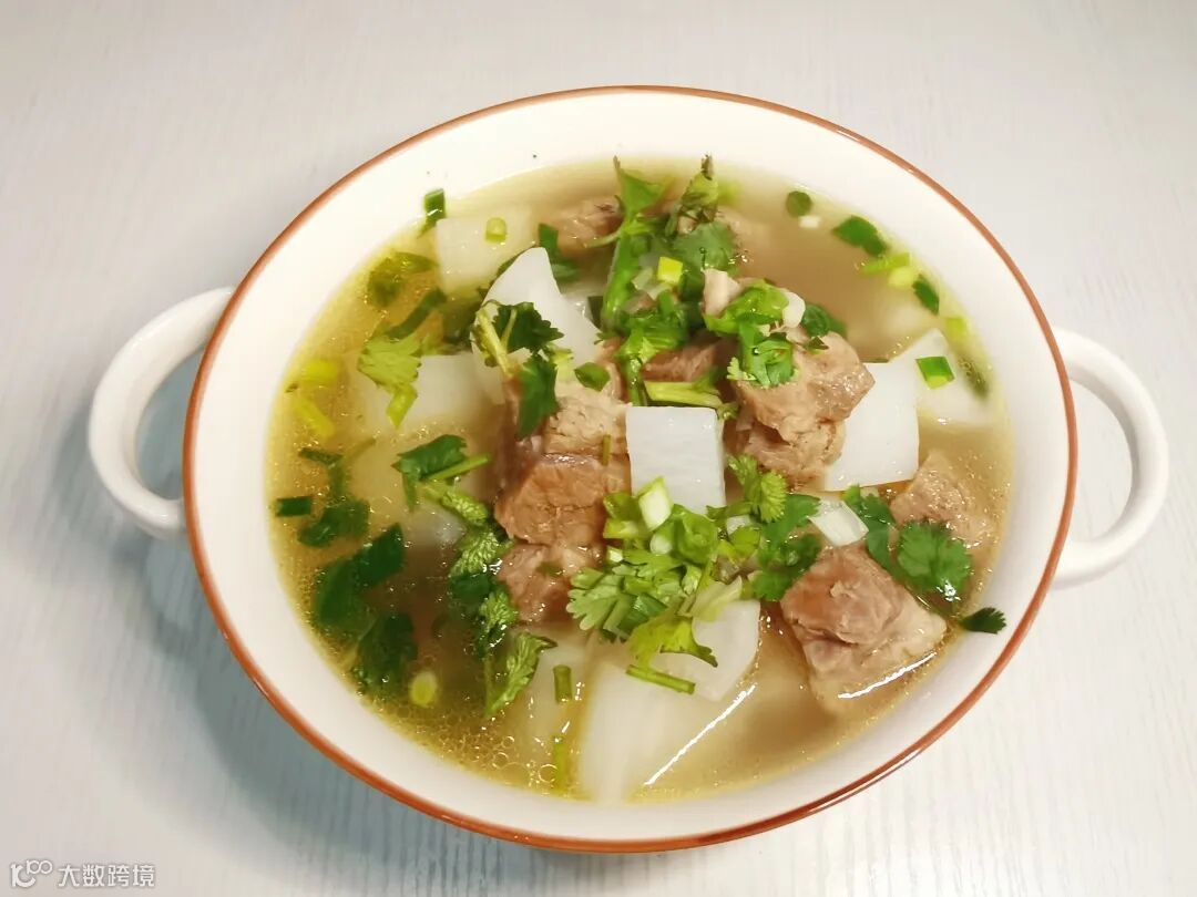 出锅后迅速放入洋葱沫和香菜,酸甜可口的牛腩番茄汤就完成了!