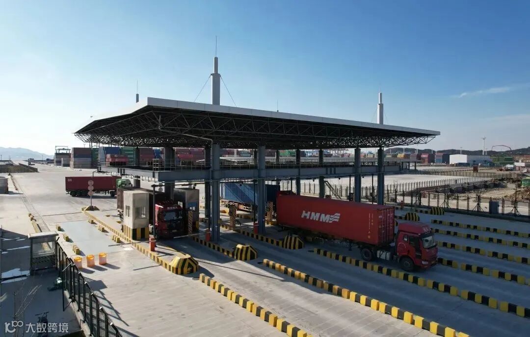 1月10日,外集卡有序通过金塘港区甬舟集装箱码头新卡口。
