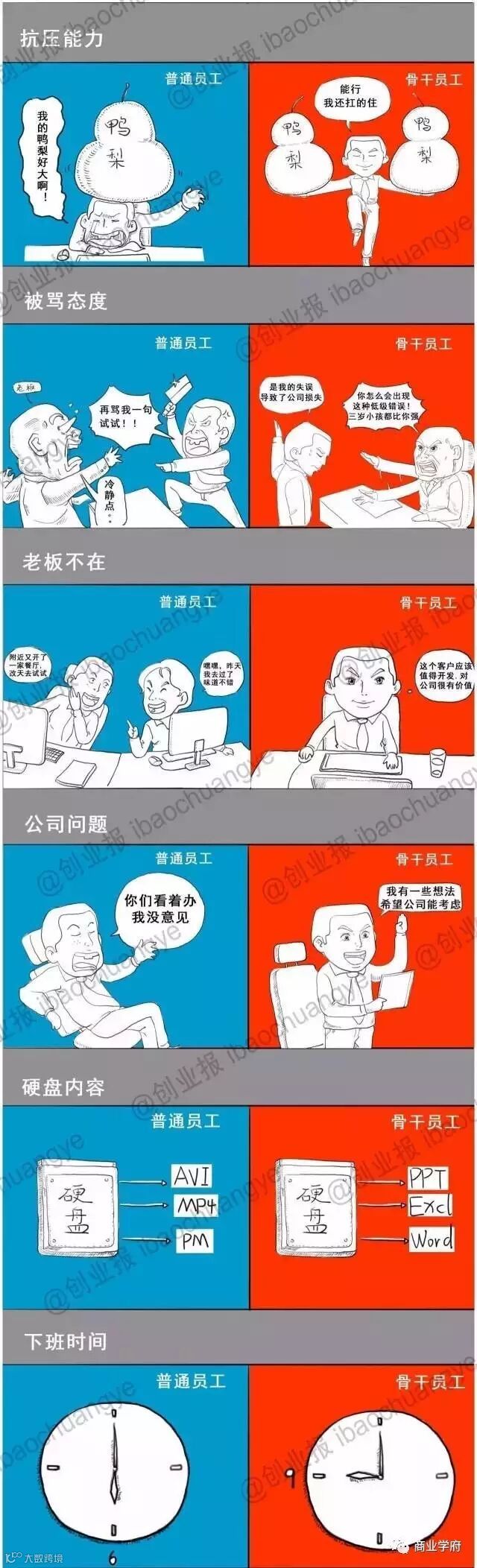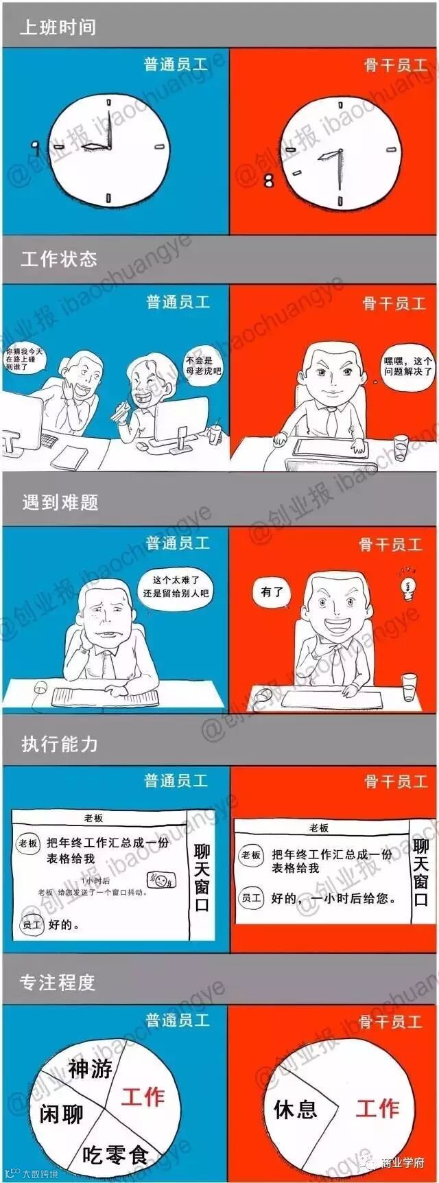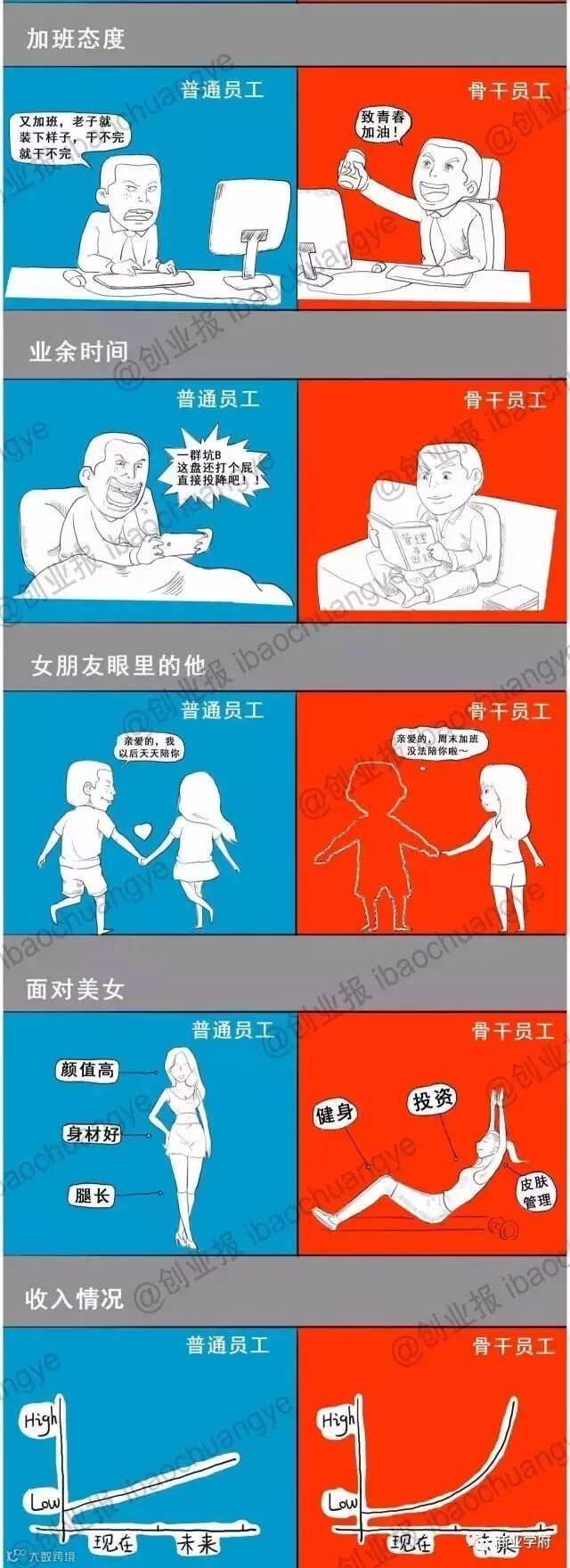 一张图看懂普通员工和骨干员工的区别(漫画版)