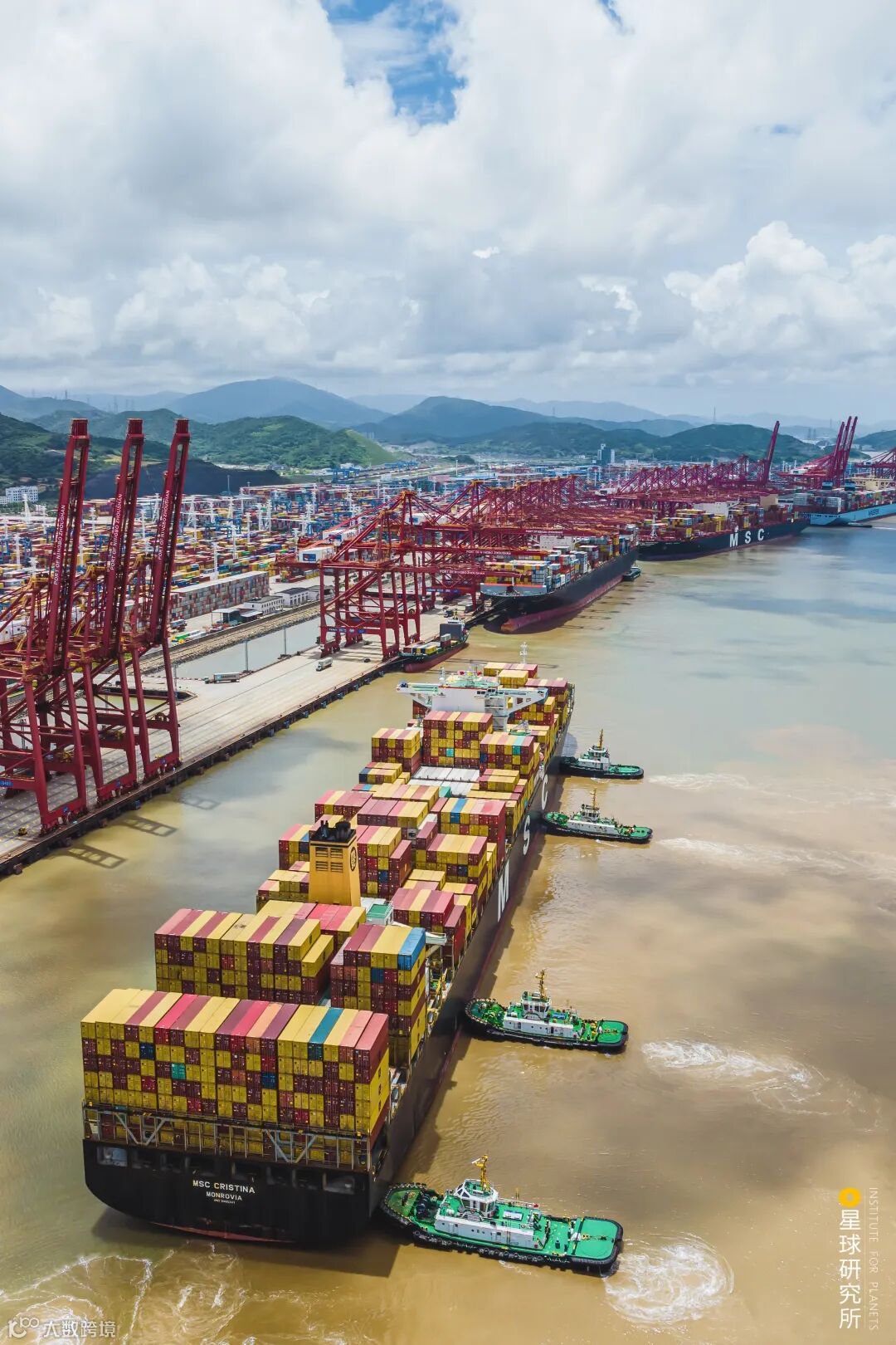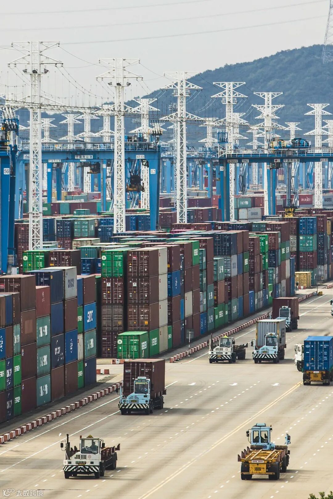 (截至2021年宁波舟山港的货物吞吐量已连续13年位列世界第一,注意货物吞吐量包括散货、集装箱、液体货物吞吐量等,下图为集装箱堆场,图片来源@视觉中国)