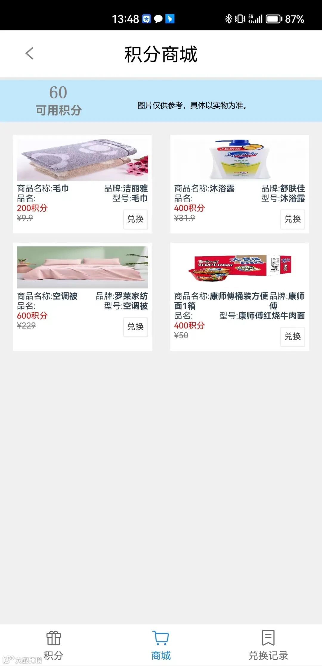 进入商城选择奖品兑换