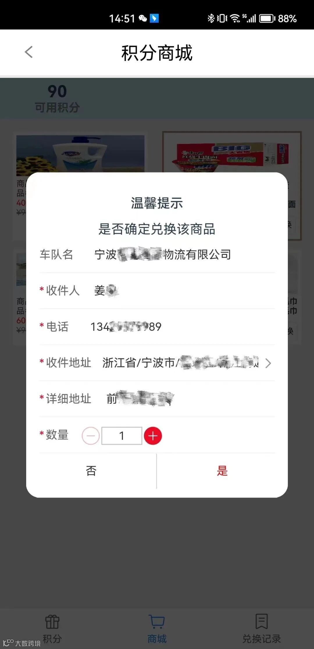 填写相关信息确认兑换
