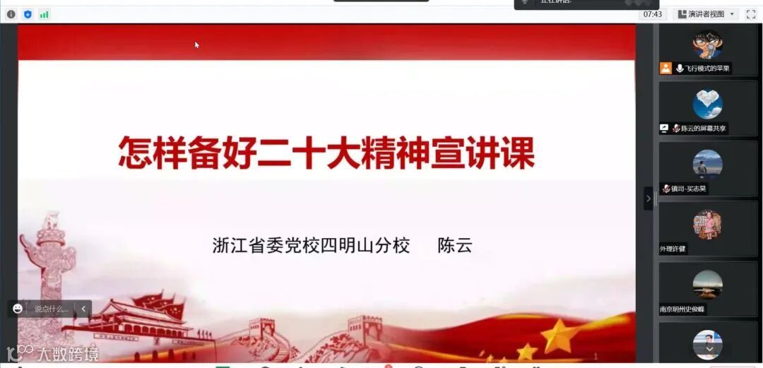 浙江海港硬核青年宣讲团邀请省委党校老师就怎样备好党的二十大精神宣讲课开展了线上培训学习活动,宣讲团3位代表分享了学习感想。在做到自身“读报告、悟精神”的同时,宣讲团成员开始为下步准确务实、逻辑清晰、形式多样地开展宣讲活动作准备。
