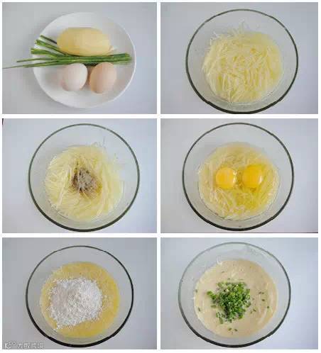 主料:土豆1个、鸡蛋2个、面粉3大勺