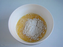 8:鸡蛋打散以后加入少许低筋面粉。
