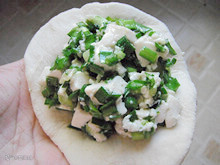 12:包入韭菜豆腐馅。