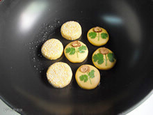4:南瓜饼别做太大,太大的里面不容易煎熟。而且揉南瓜面团的时候要揉得光滑点,这样做出来的成品特别美观。