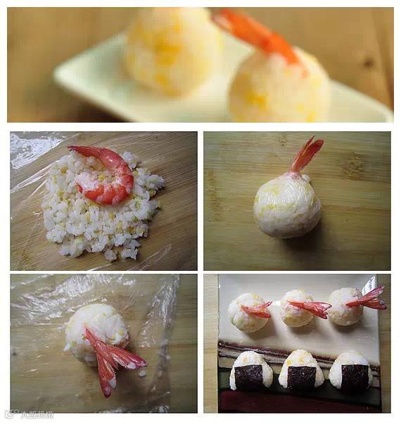原料:大米 ,玉米渣,活虾,寿司醋,海苔。