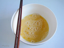 2:鸡蛋磕入深点的碗中,打散。