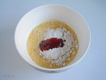 5:加入3大勺面粉拌匀。