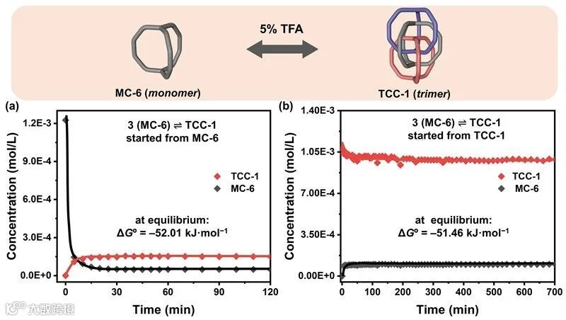 )相似。这些结果表明三聚笼锁的形成是动态的,其平衡与反应的起点无关。