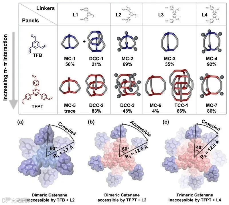 。该对照实验说明增强面板的π-π堆积有利于笼锁的形成。使用较长的连接臂