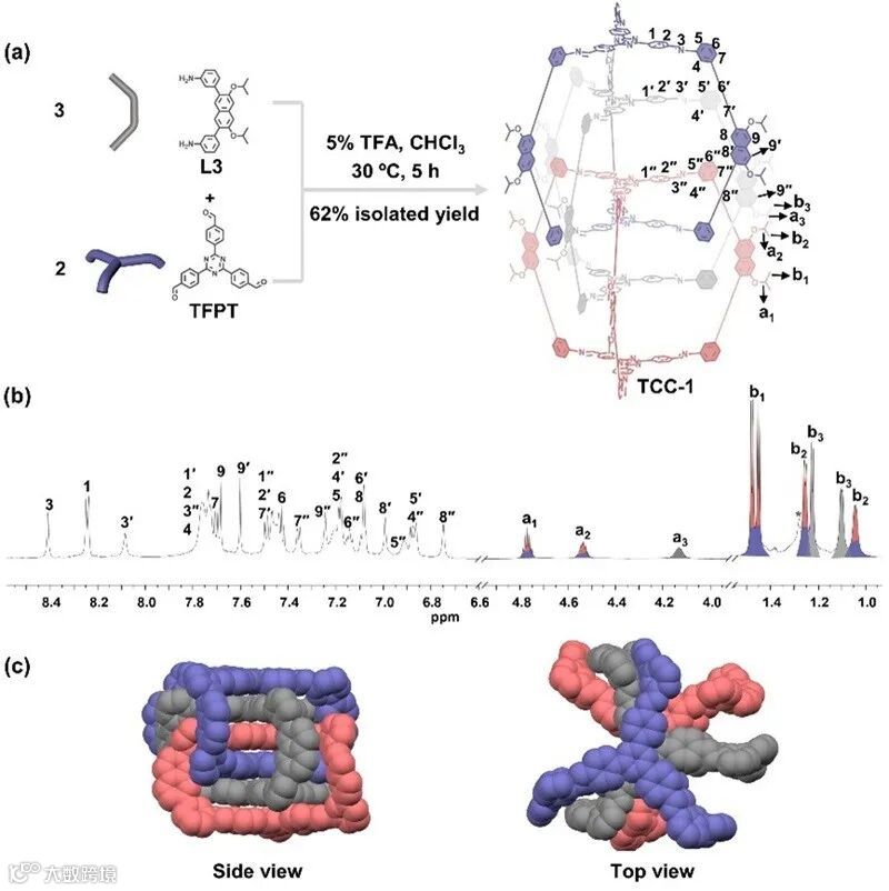 之间的亚胺缩合反应,以62%分离产率得到了交织三聚笼锁