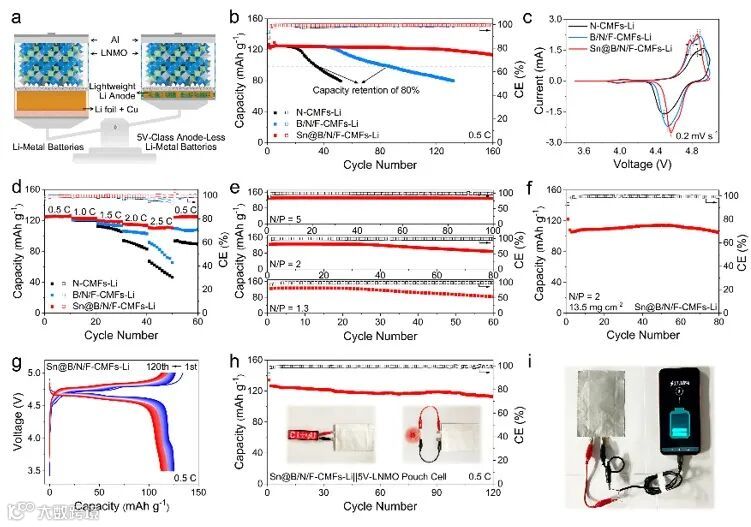 最后,作者基于Sn@B/N/F-CMFs集流体,与5 V级
