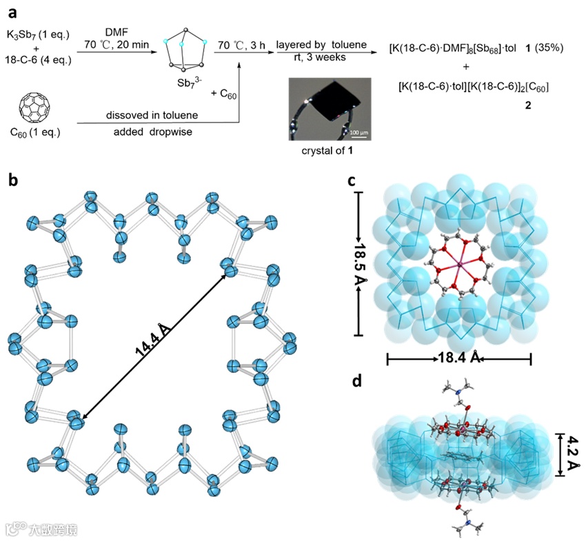导读:南开大学孙忠明教授团队使用全金属团簇合成新方法以Zintl前体作为原料,使用C60作为氧化剂成功实现了首例单晶结构明确的“全金属甜甜圈” Sb688−的合成