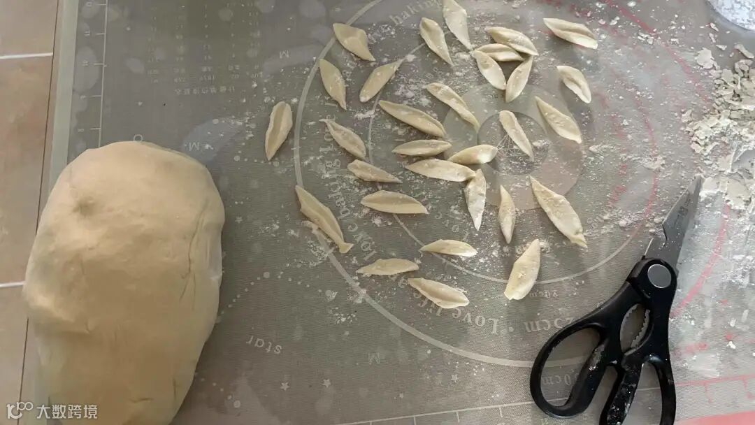 剪刀面的工具很简单,如它的名字,用剪刀就可以。将面粉、些许盐和水和成团,松弛30分钟。