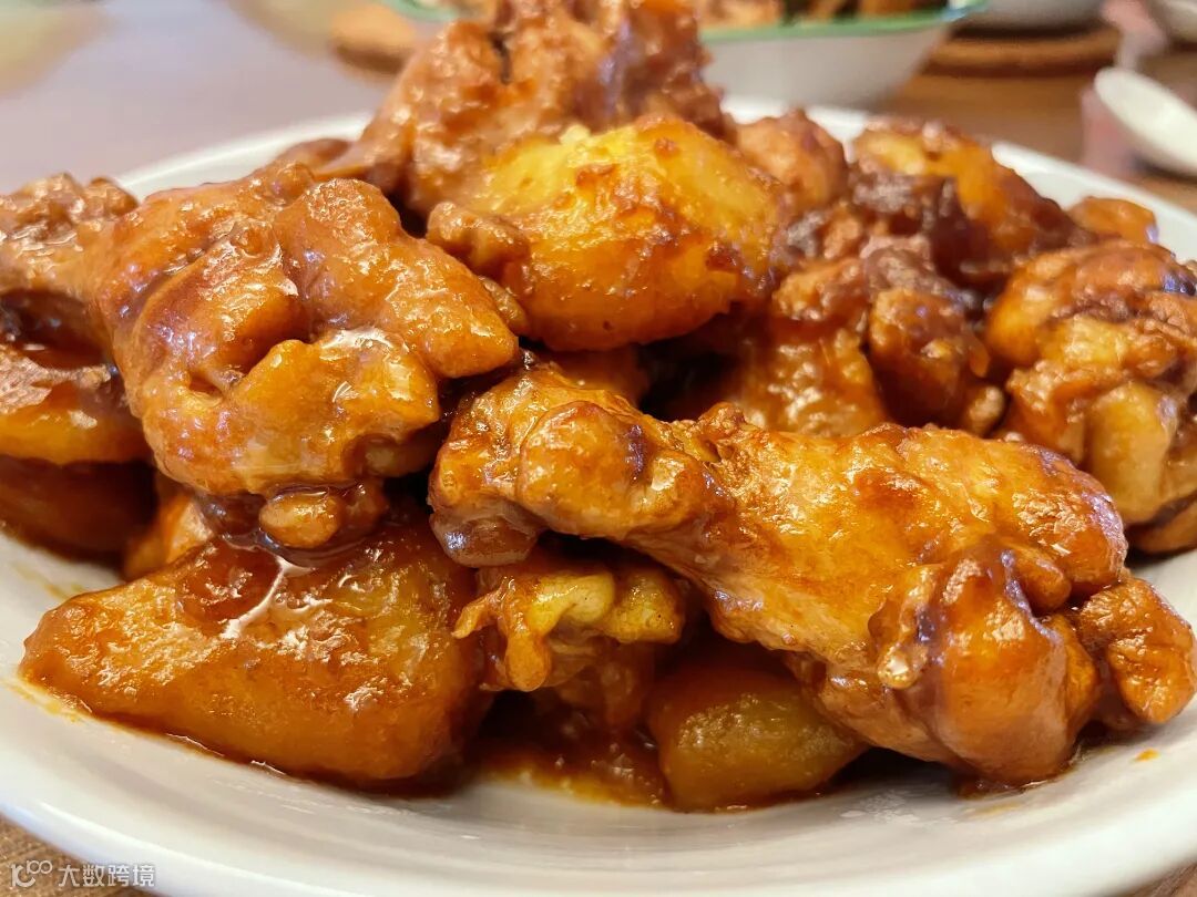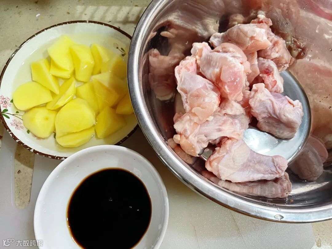 油热煎鸡翅根至金黄,倒入照烧汁,加入适量水淹过翅根,中小火焖烧二十分钟后,倒入土豆块焖至其变软,随后大火收汁。
